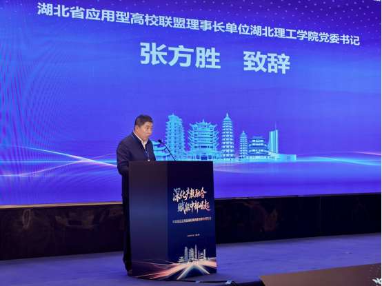 湖北省应用型高校联盟理事长单位湖北理工学院党委书记张方胜致欢迎辞。他指出,应用型高校是培养应用型人才、服务区域发展、推动科技创新的重要力量,也是深化产教融合、促进教育链、人才链与产业链、创新链有效衔接的关键载体。在国家深入实施中部地区崛起战略、加速培育新质生产力的背景下,区域经济社会发展迎来前所未有的发展机遇,对应用型高校的办学水平和服务能力提出了更高要求。张方胜强调,应用型高校联盟自2016年成立以来,始终坚守“提高人才培养质量、推动应用型高校转型发展”的宗旨,积极推动联盟内高校开展产教融合、校企合作、师资建设、人才培养模式改革等方面的交流协作,为湖北省应用型高校高质量发展注入了强劲动力,在湖北省加快建成中部地区崛起重要战略支点中彰显了教育担当。他希望以此次会议为契机,各兄弟院校紧紧围绕中部地区高质量发展重大战略需求,强化联盟引领、深化协同创新、聚力产教融合、提升服务能力,为奋力谱写中部地区全面崛起新篇章作出新的更大贡献。